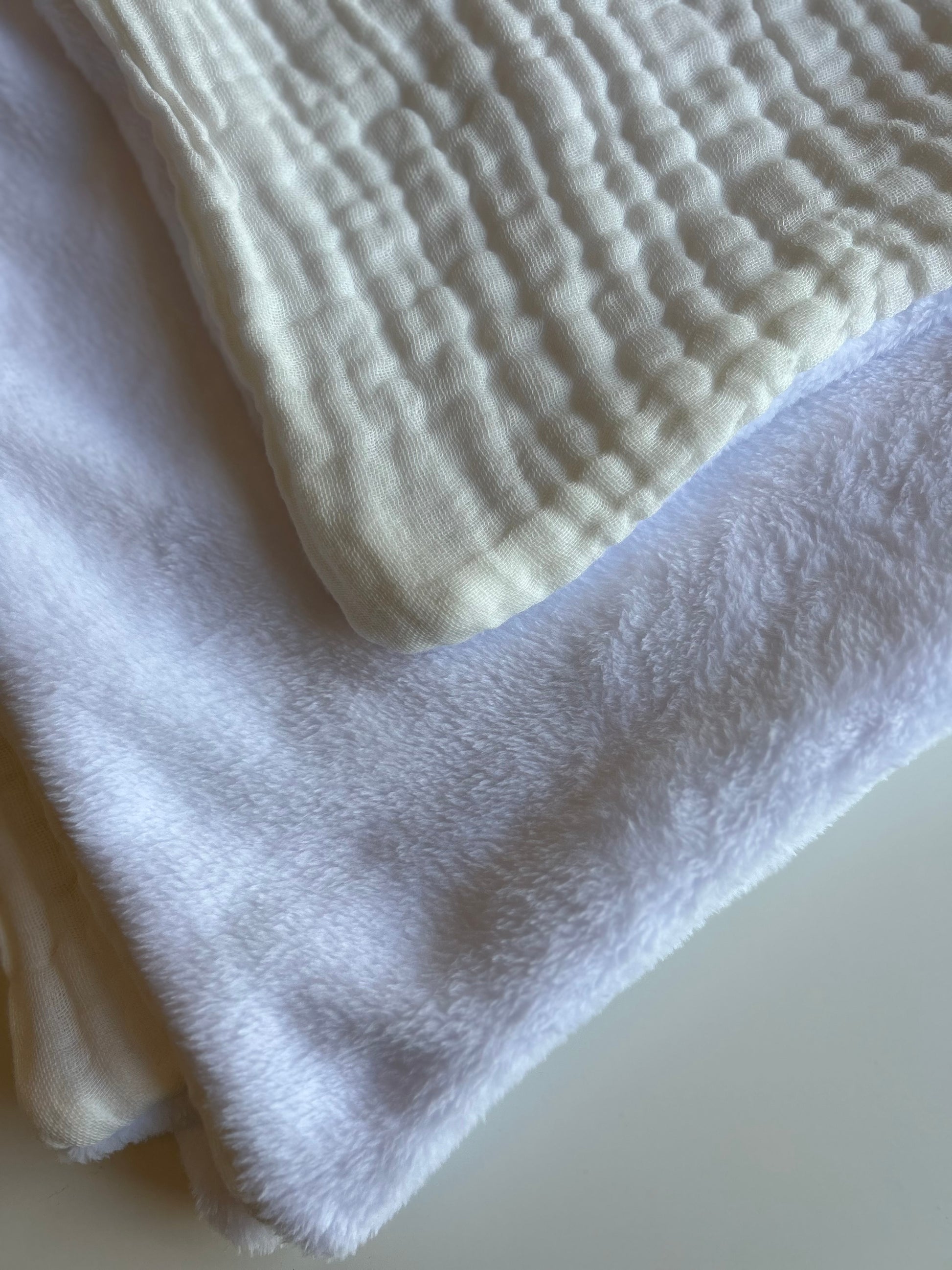 La doublure polaire vient se rajouter au plaid en gaze de coton.